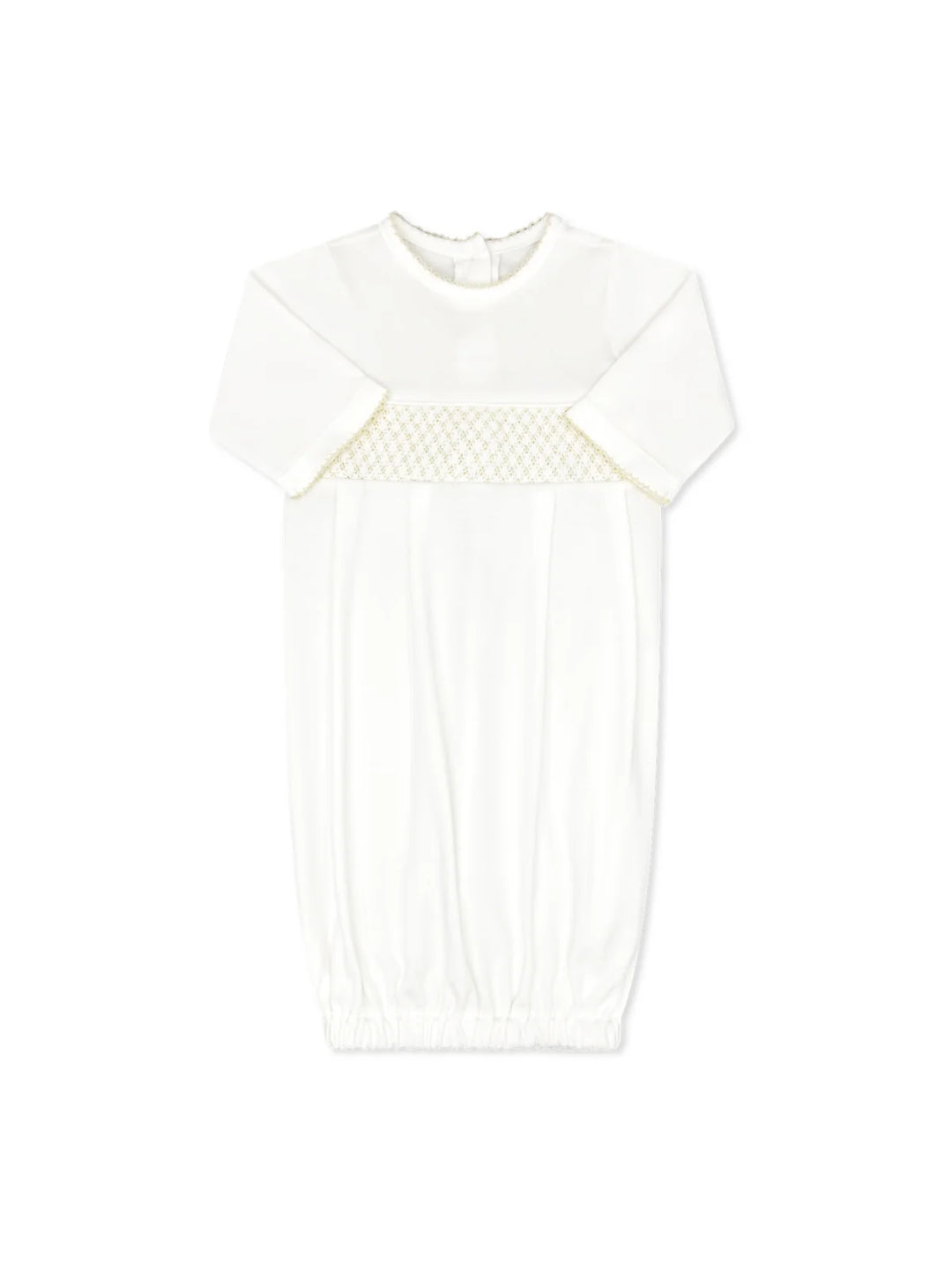 Little girls twirling with delight in crisp smocked dresses. Heirloom christening gowns lovingly passed from generation to generation. Little boys with slicked-down hair, chubby knees and a matching short set toddling off to church on a sunny Sunday morning.