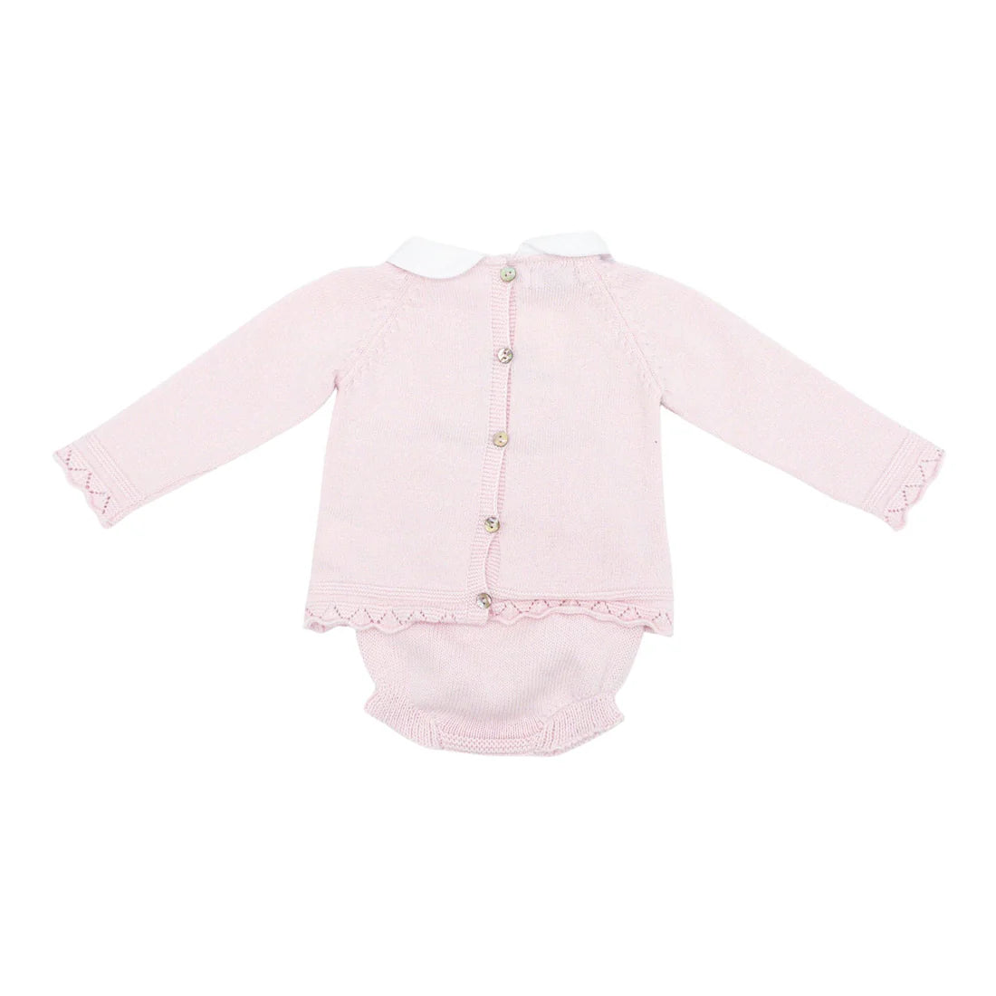 Introducing the Bow Diaper Set by Mi Lucero! This sweet two-piece ensemble features a charming knitted top, adorned with a signature woven-knit bow, and a matching, comfortable diaper cover. The thoughtful design and heirloom quality ensure this set is not just an outfit but a keepsake to be treasured and remembered for years to come!
