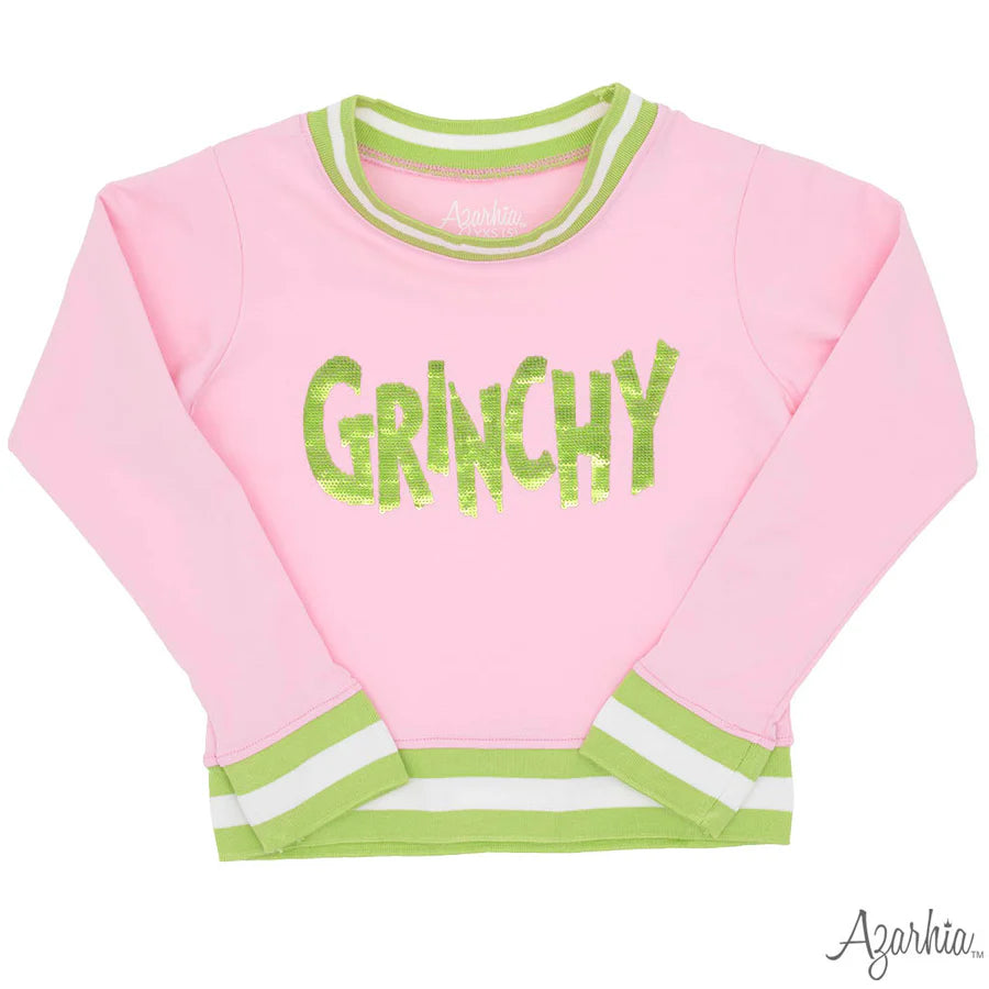 Grinchy in Sequin on Pink Crew Sweatshirt