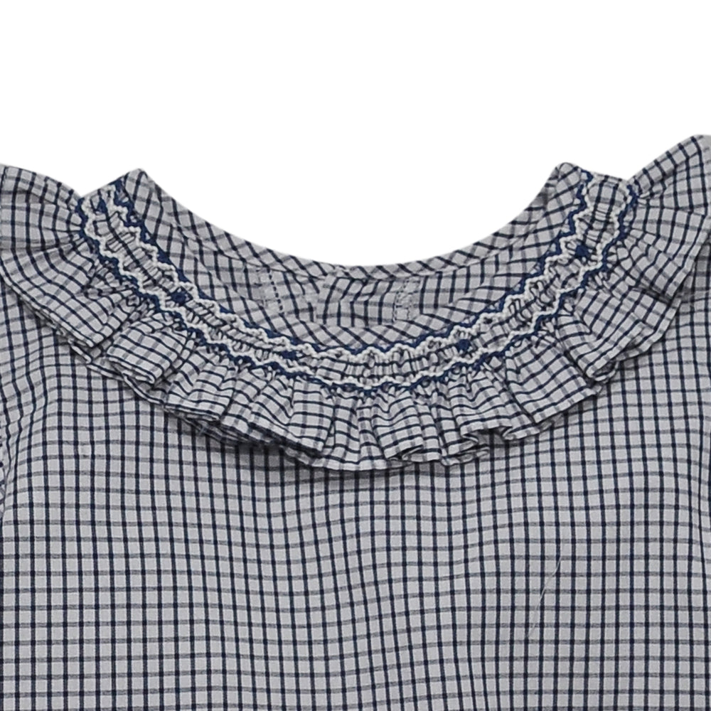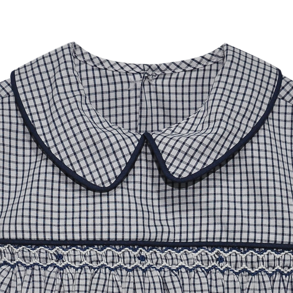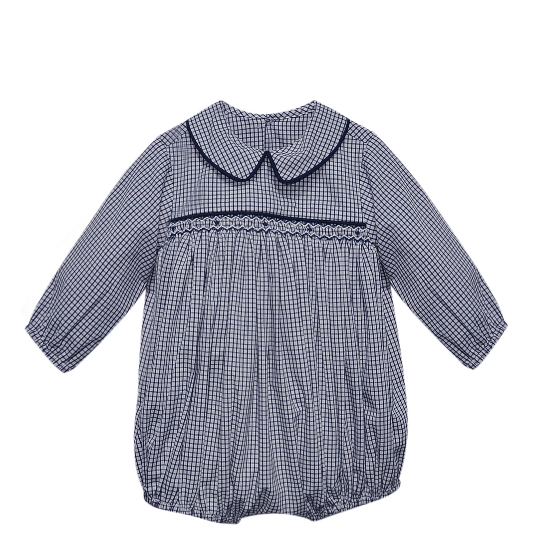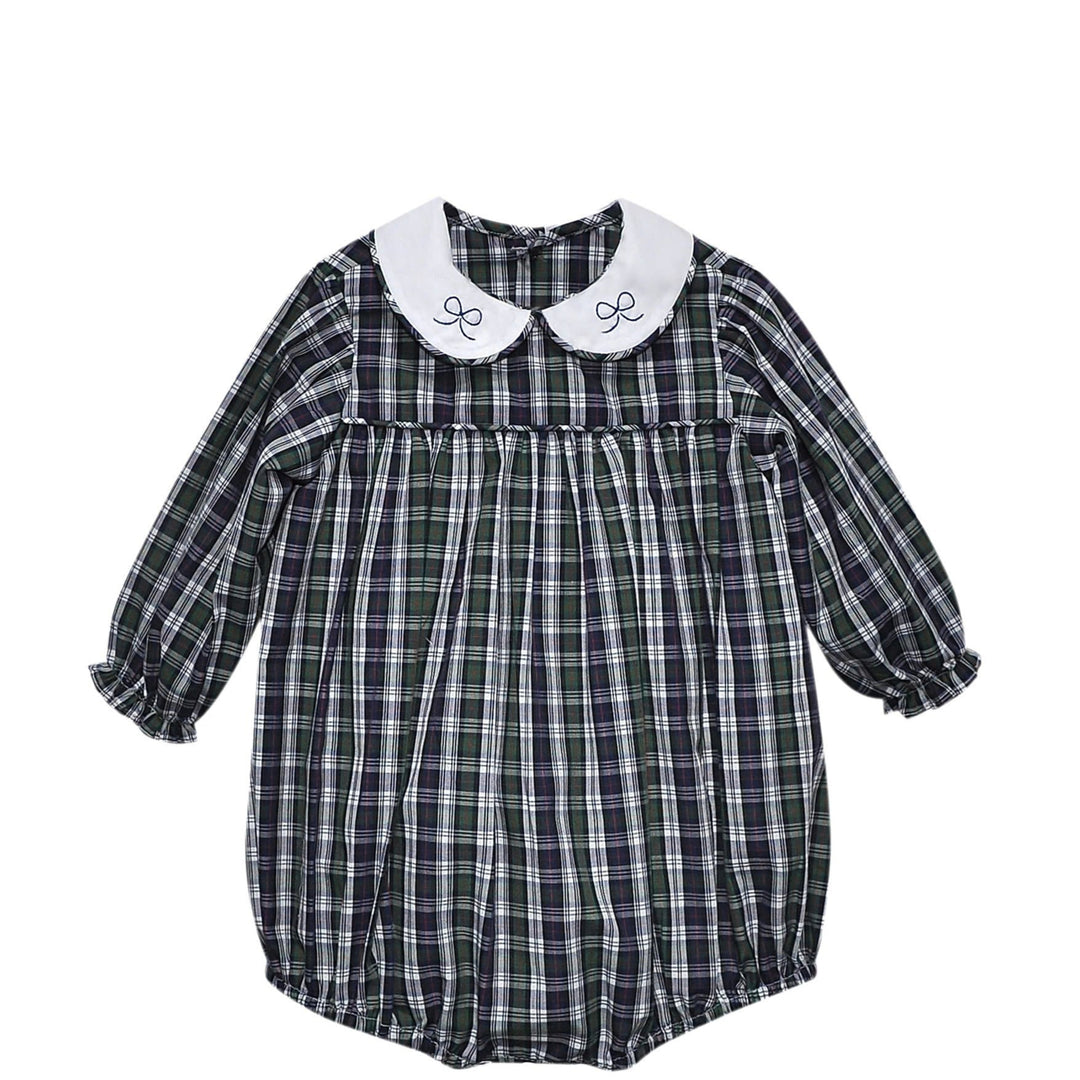 Navy Plaid Sawyer Girl Bubble- Bows