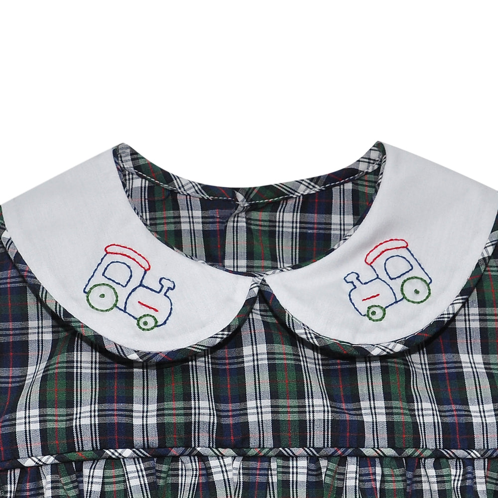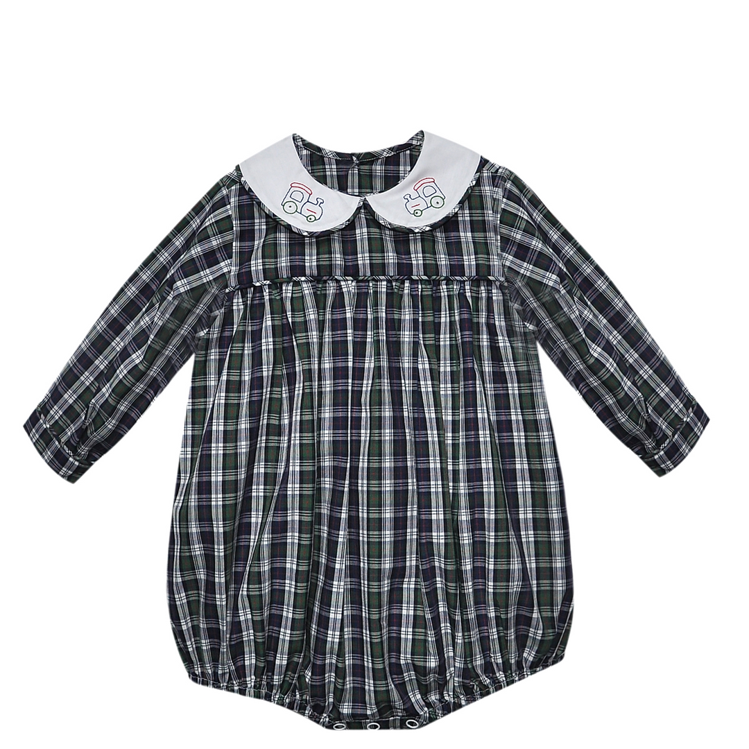 Navy Plaid Sawyer Bubble- Train