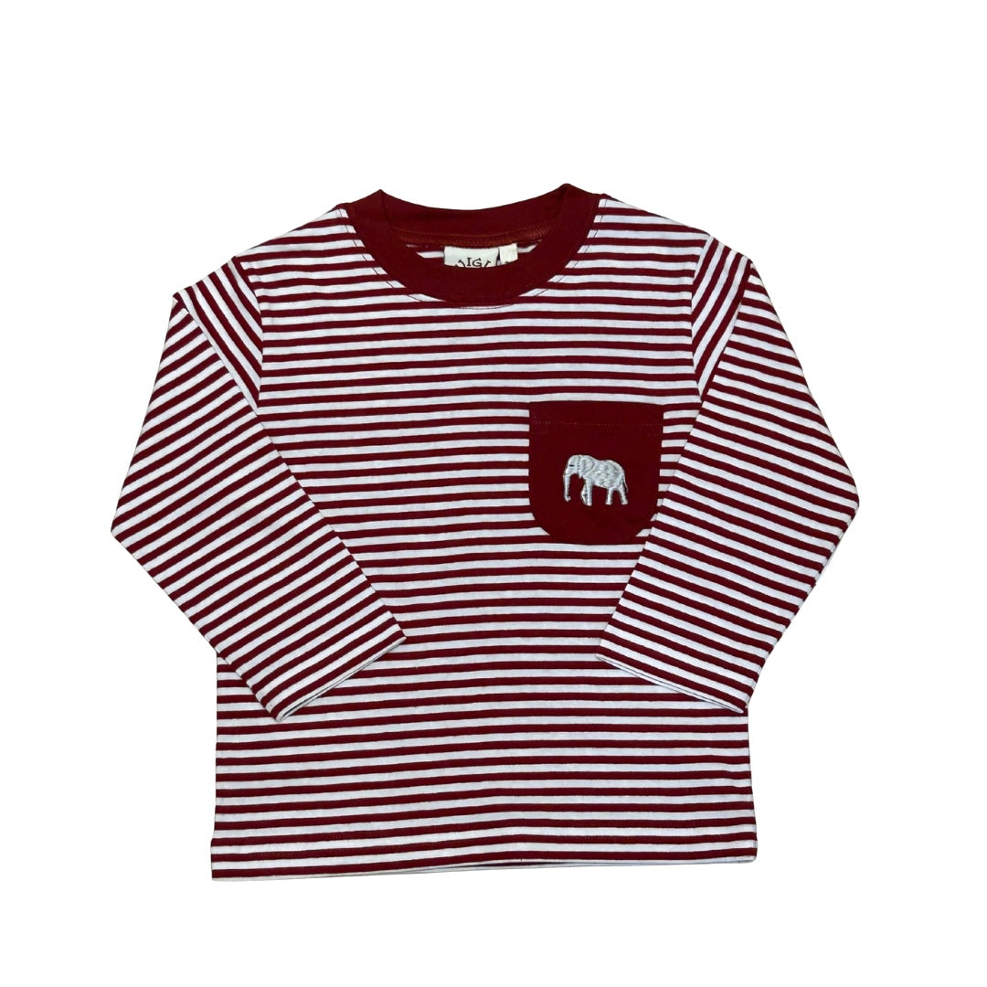 Long Sleeve Pocket Tee- Crimson Elephant