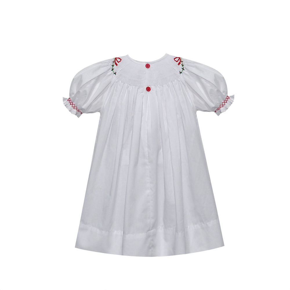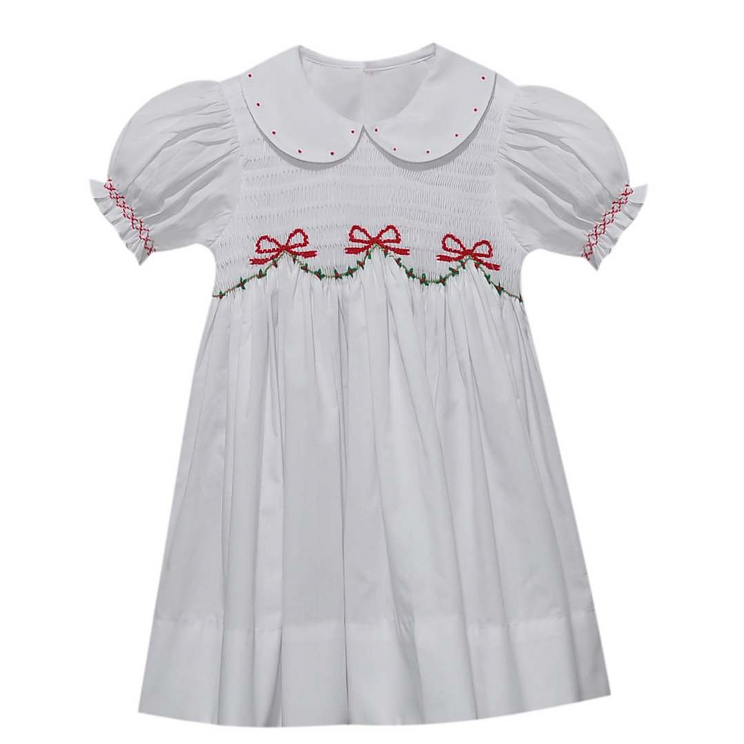 White Cate Bishop Dress- Christmas Ribbons