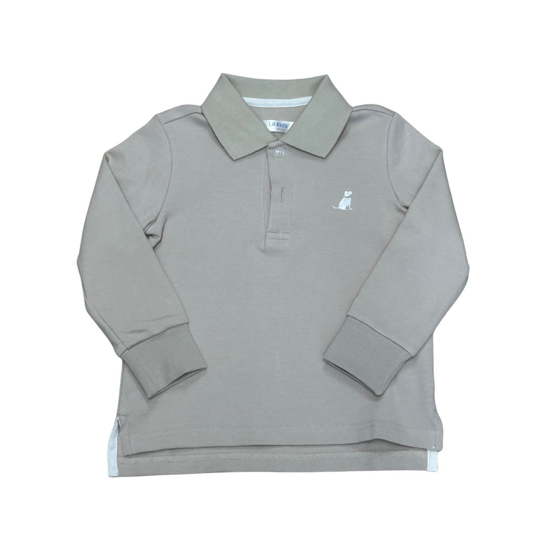 Long Sleeve Polo- Stone