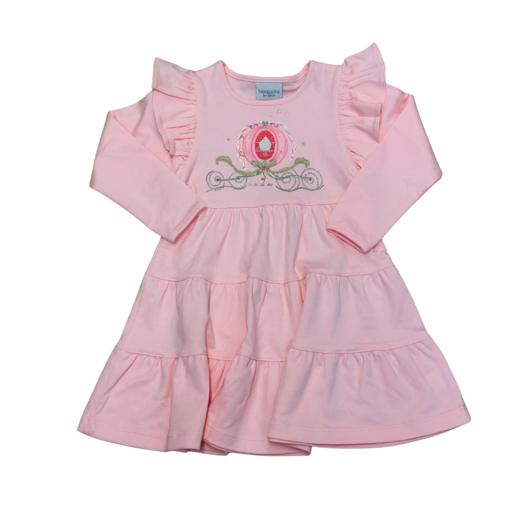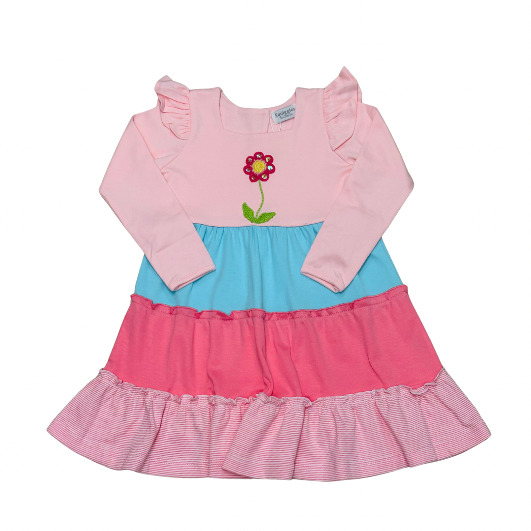 Red Stripe Dress with Black Trim- Cheerleader Applique