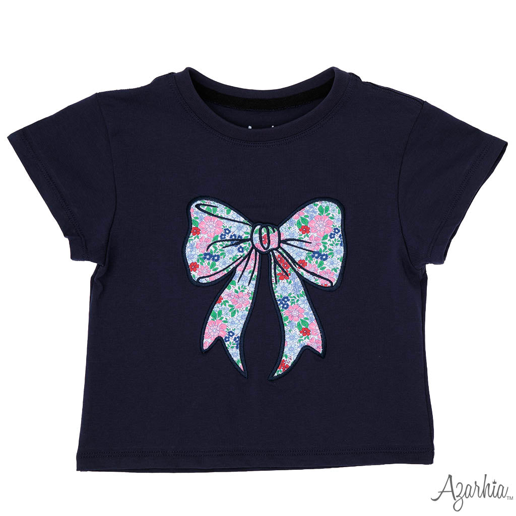 London Floral Bow Navy Boxy Tee
