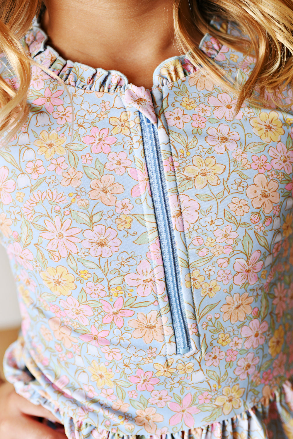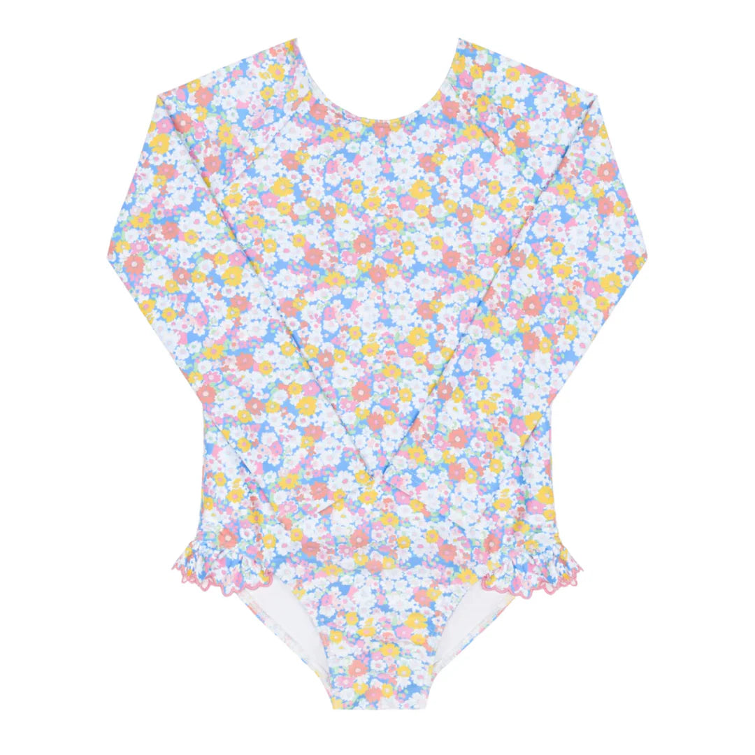 Long Sleeve Rash Guard Swim- Blue Floral