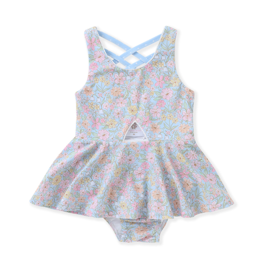 Skirted Swim Suit- Blue Floral