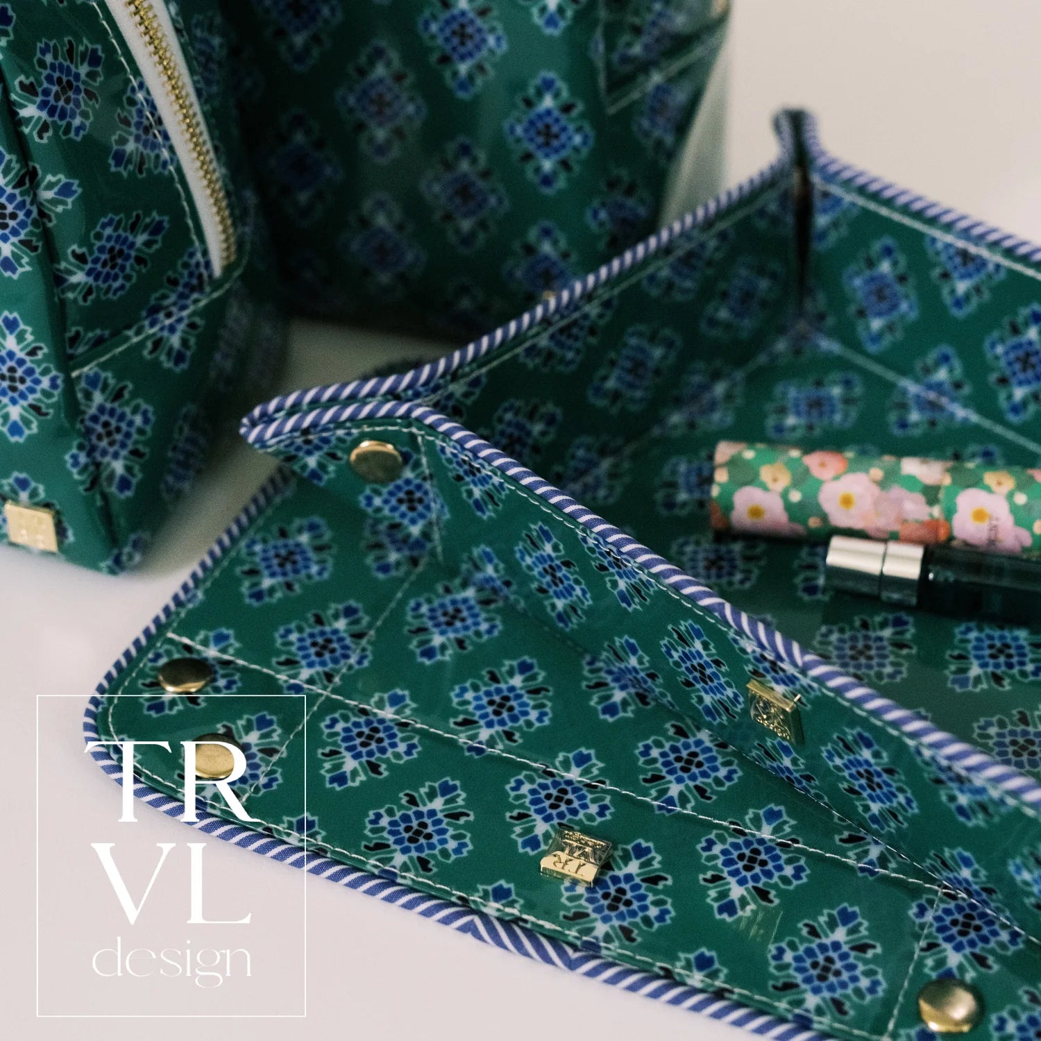 Stay organized with our TraySet, designed to catch all your pocket-sized items for home, office or TRVL. Designed in our signature saffiano, the four corners can be unsnapped to easily fit in luggage and placed on a hotel nightstand, to ensure no valuables are left behind. Makes for a great gift!