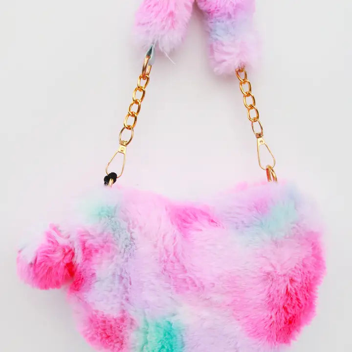 Rainbow Sherbet Fur Heart Pom Pom Purse